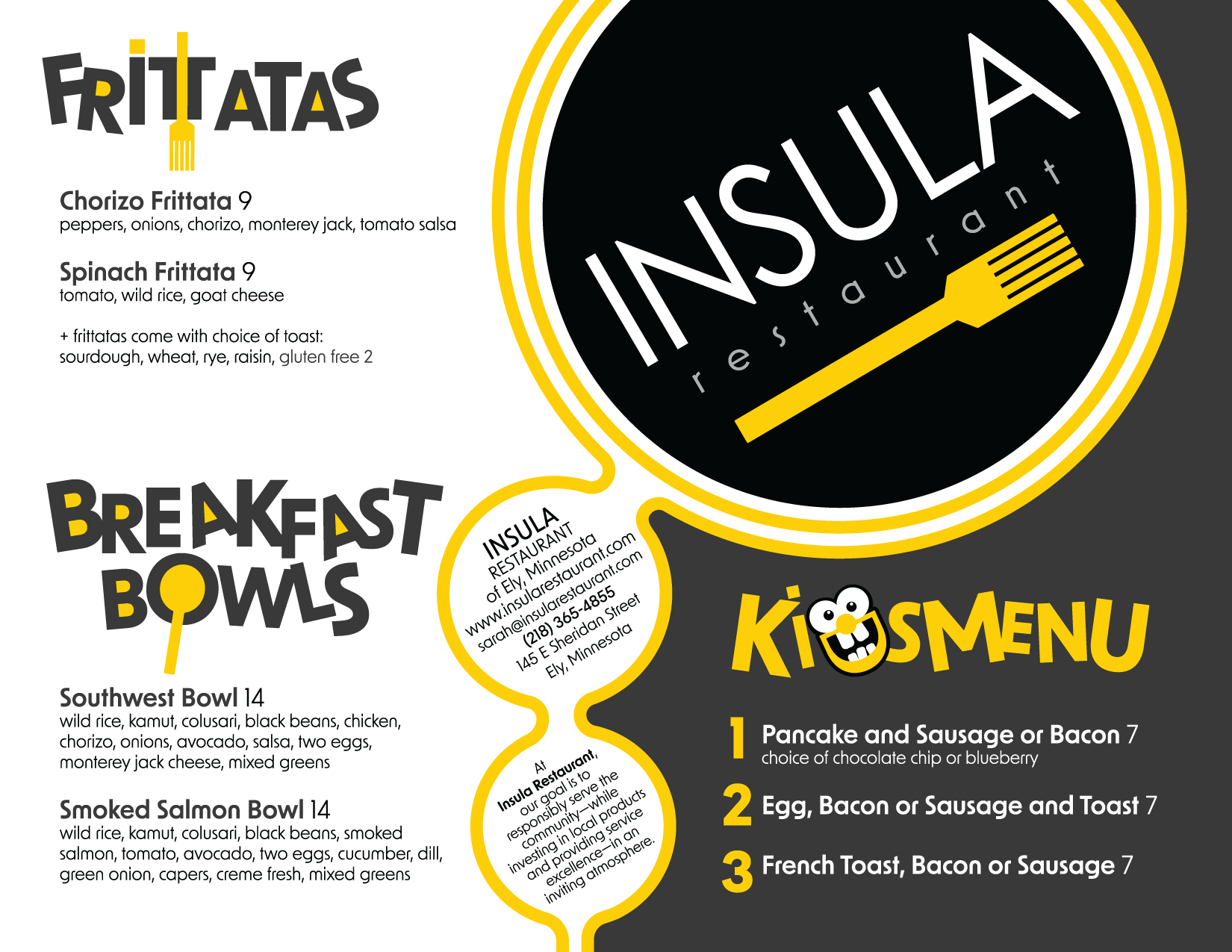 The Insula redesign for re-opening for breakfast post-pandemic. Trying to make the menu a bit more playful, organic, and clear regarding food allergies and preferences.