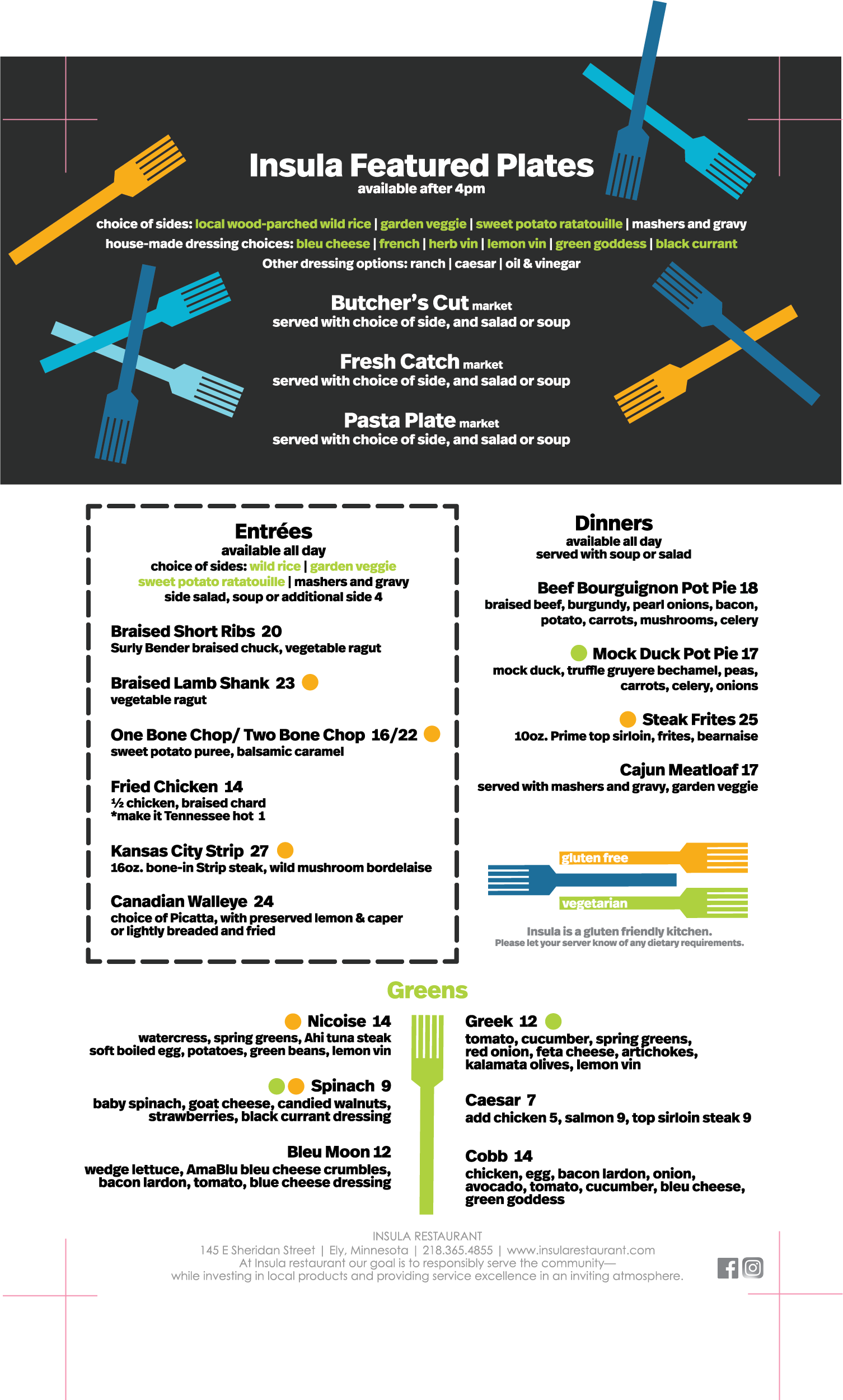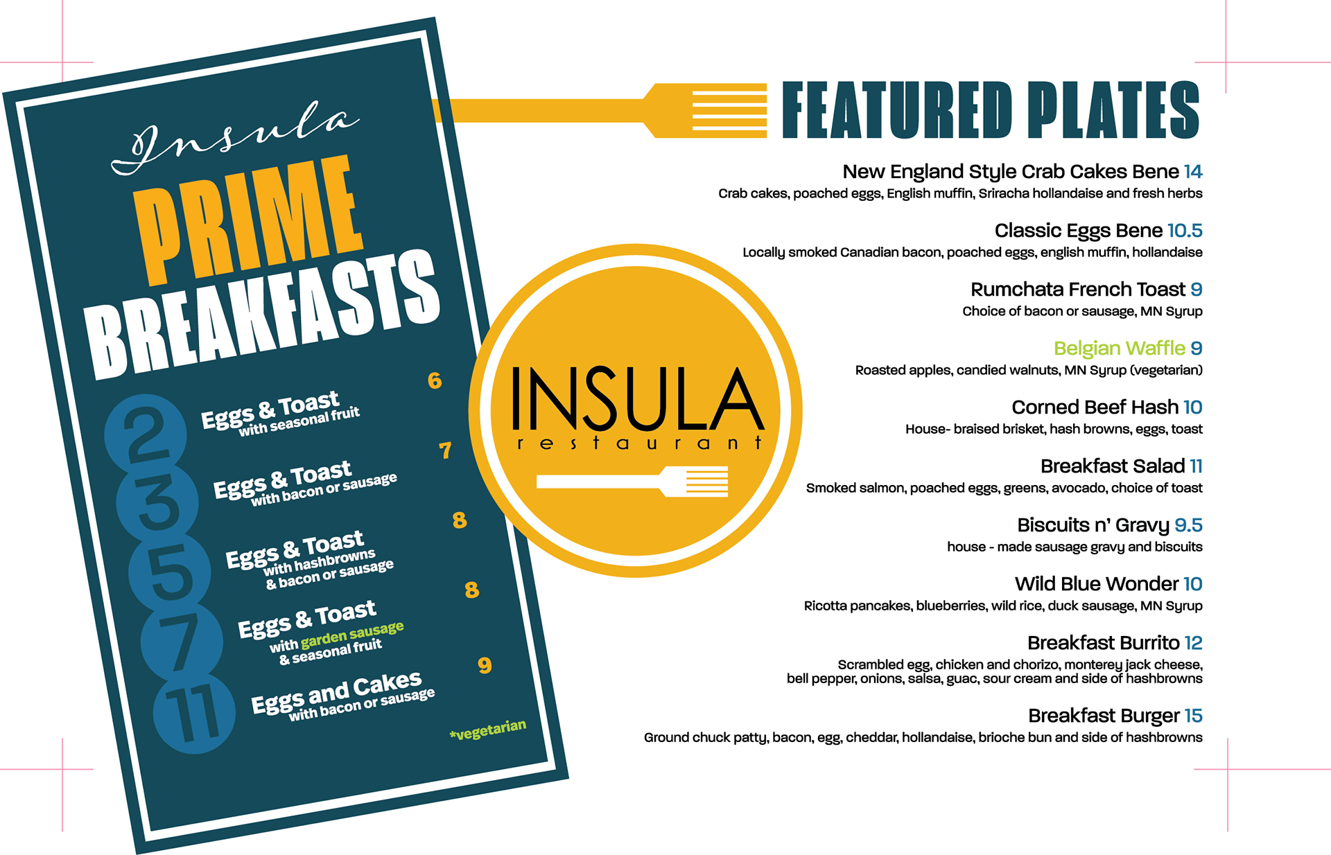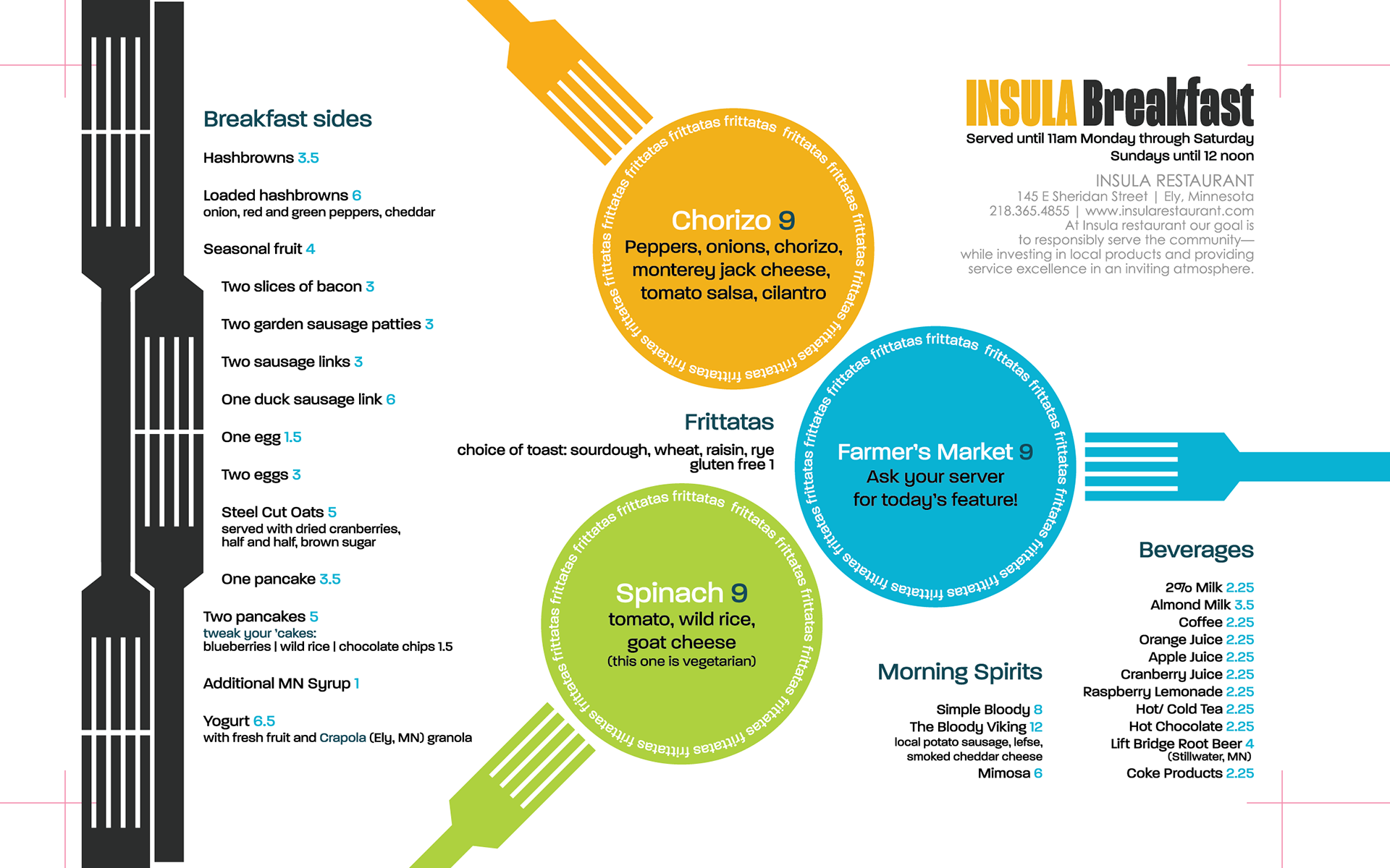Redesign for the Insula summer Restaurant menu; and example of redesign and modification for updated information and visual identity refresh