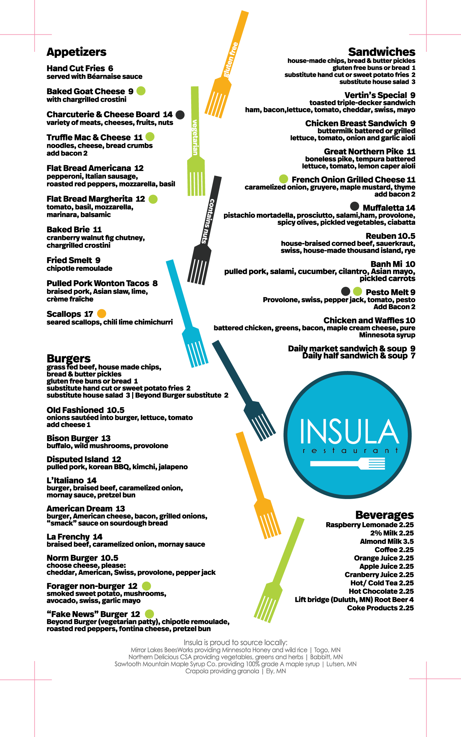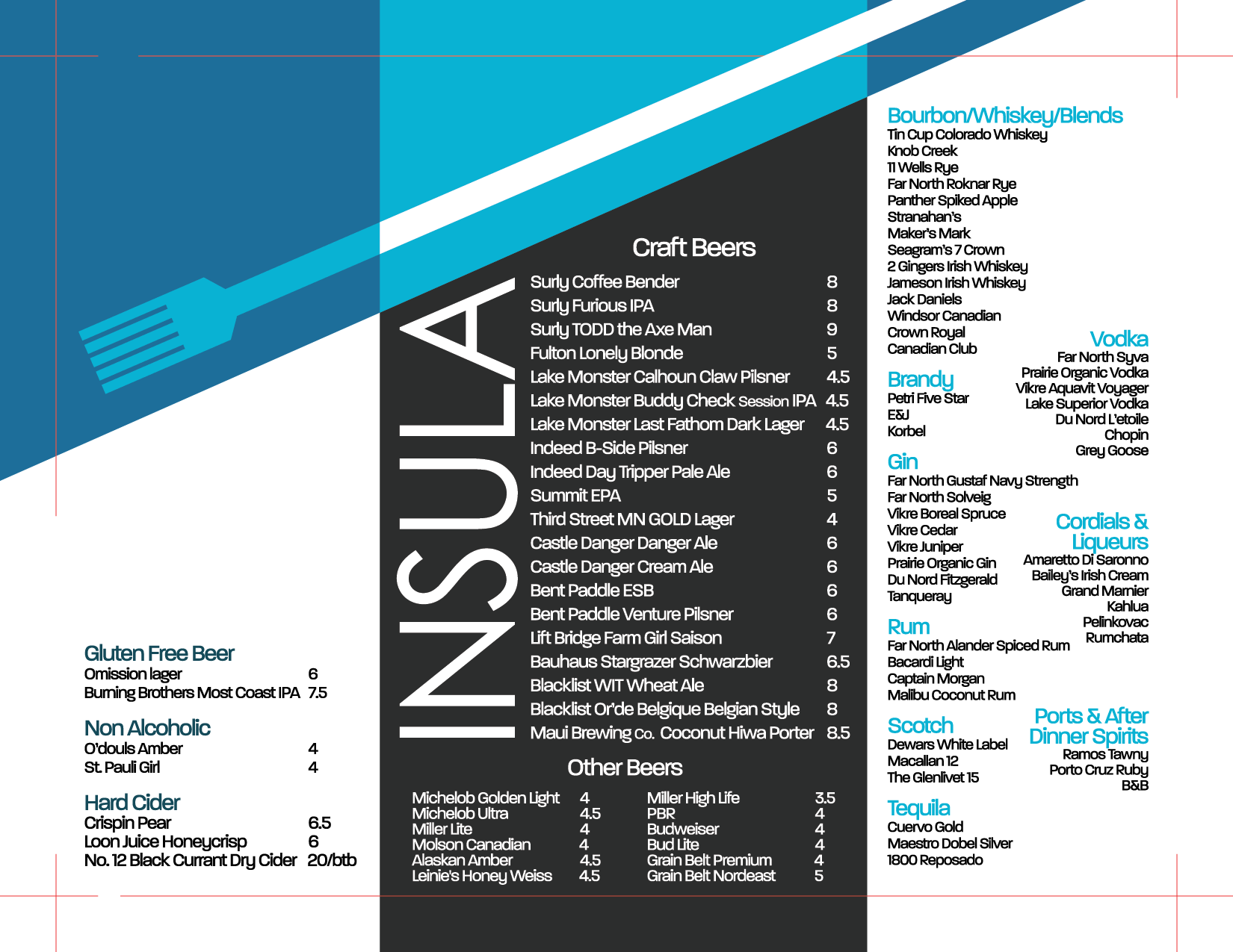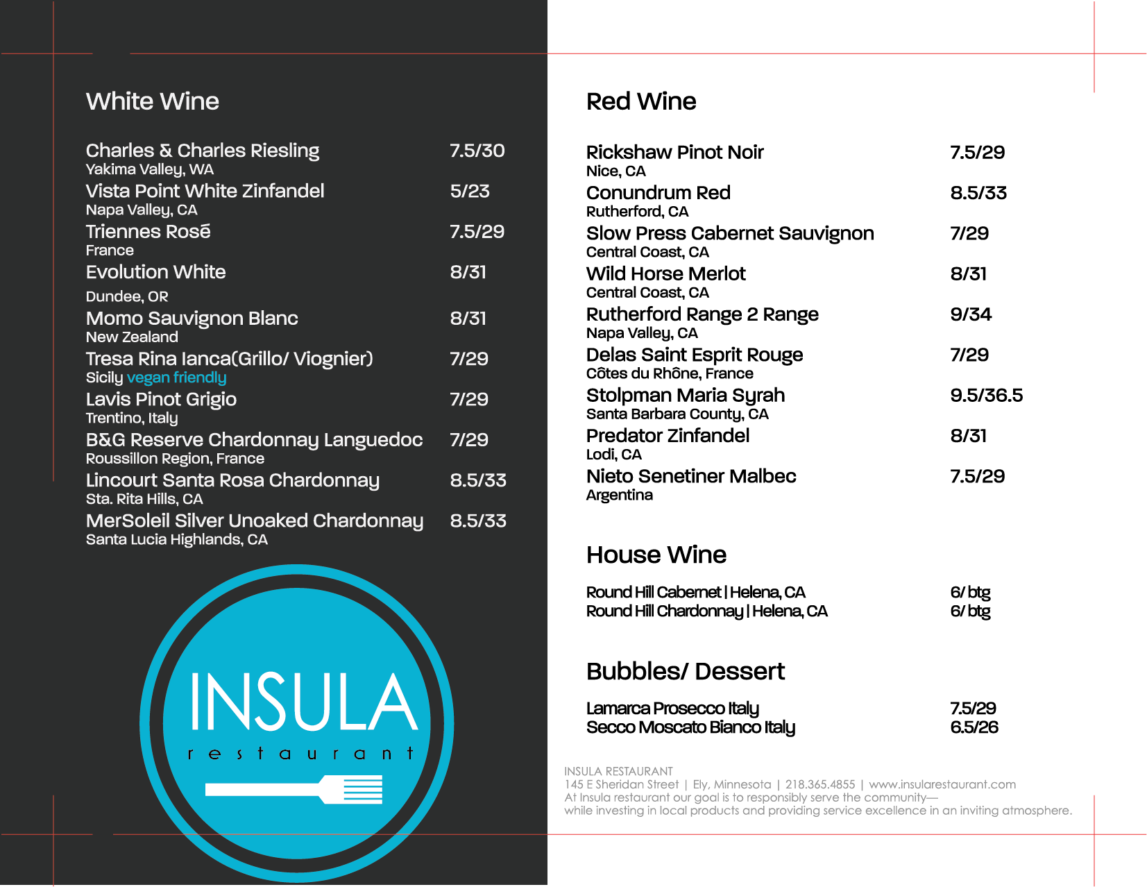 Redesign for the Insula summer Restaurant menu; and example of redesign and modification for updated information and visual identity refresh