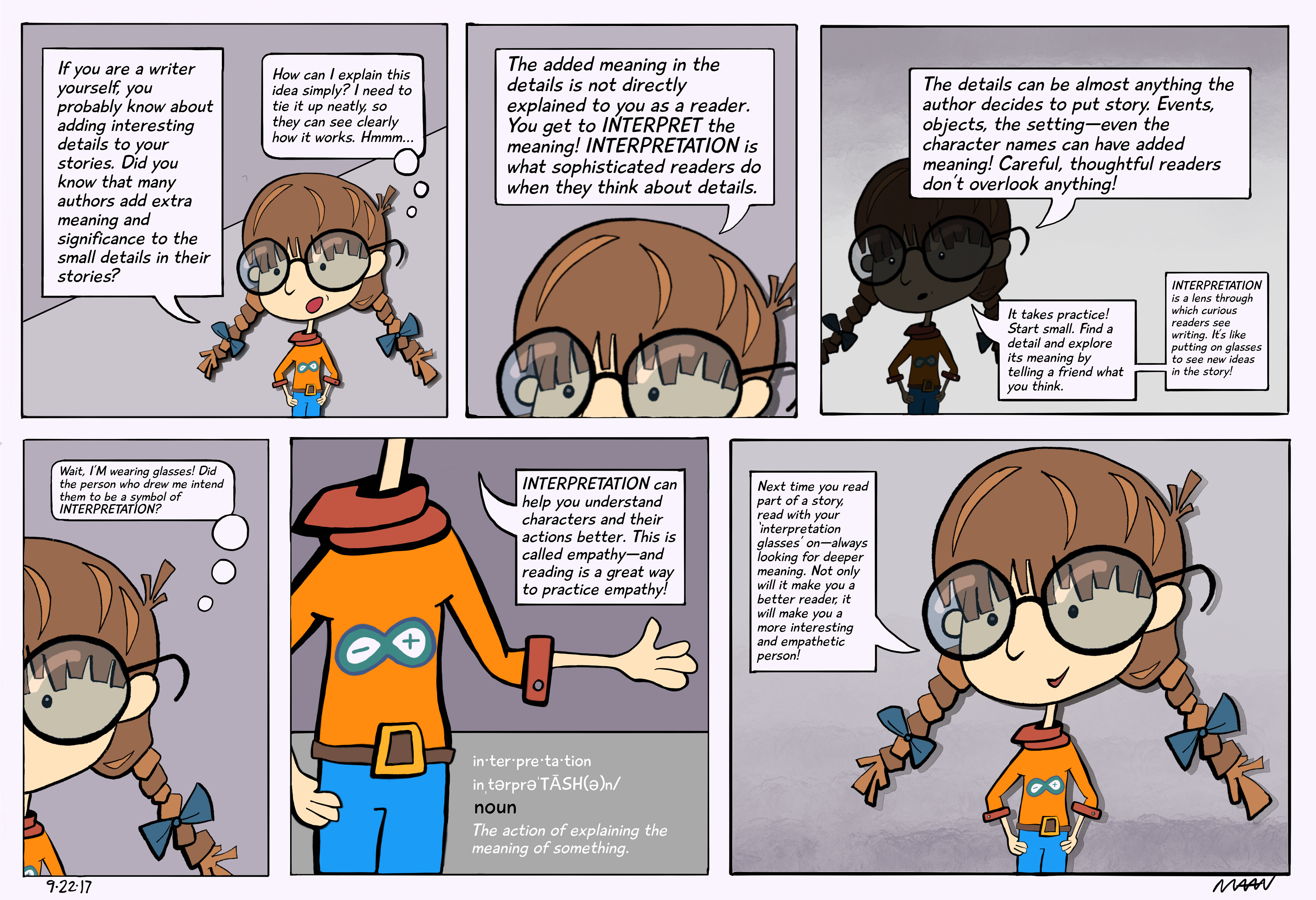 A short comic I drew to help explain finding themes in reading. This was hand drawn on an iPad using a stylus and in the Procreate app.