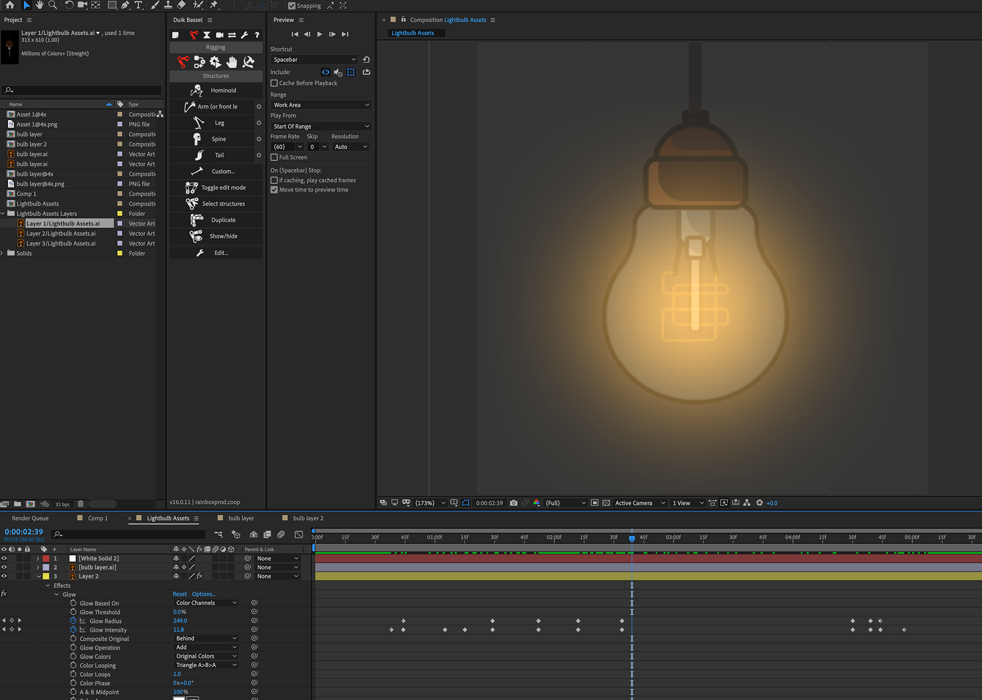 Effects research; examples of glow, brightness, animation
